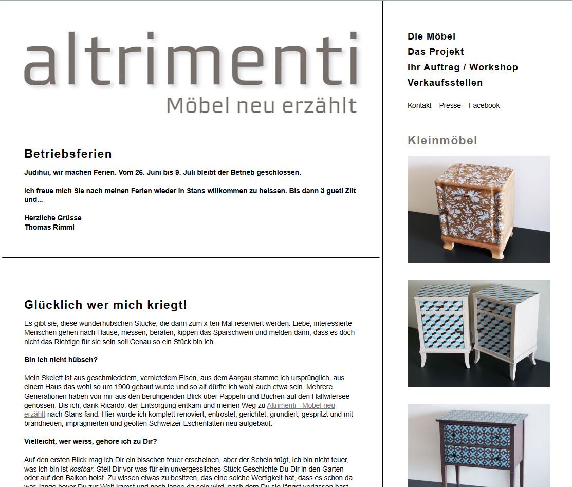 موقع ألترمينتي altrimenti للأثاث المنزلي في سويسرا