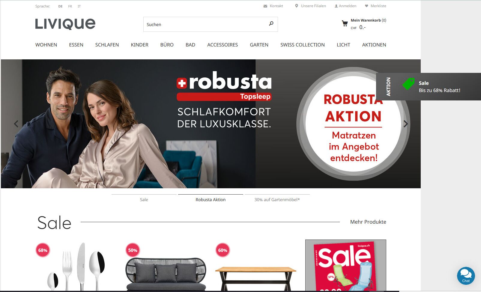 واجهة موقع ليفينج livique في سويسرا للأثاث