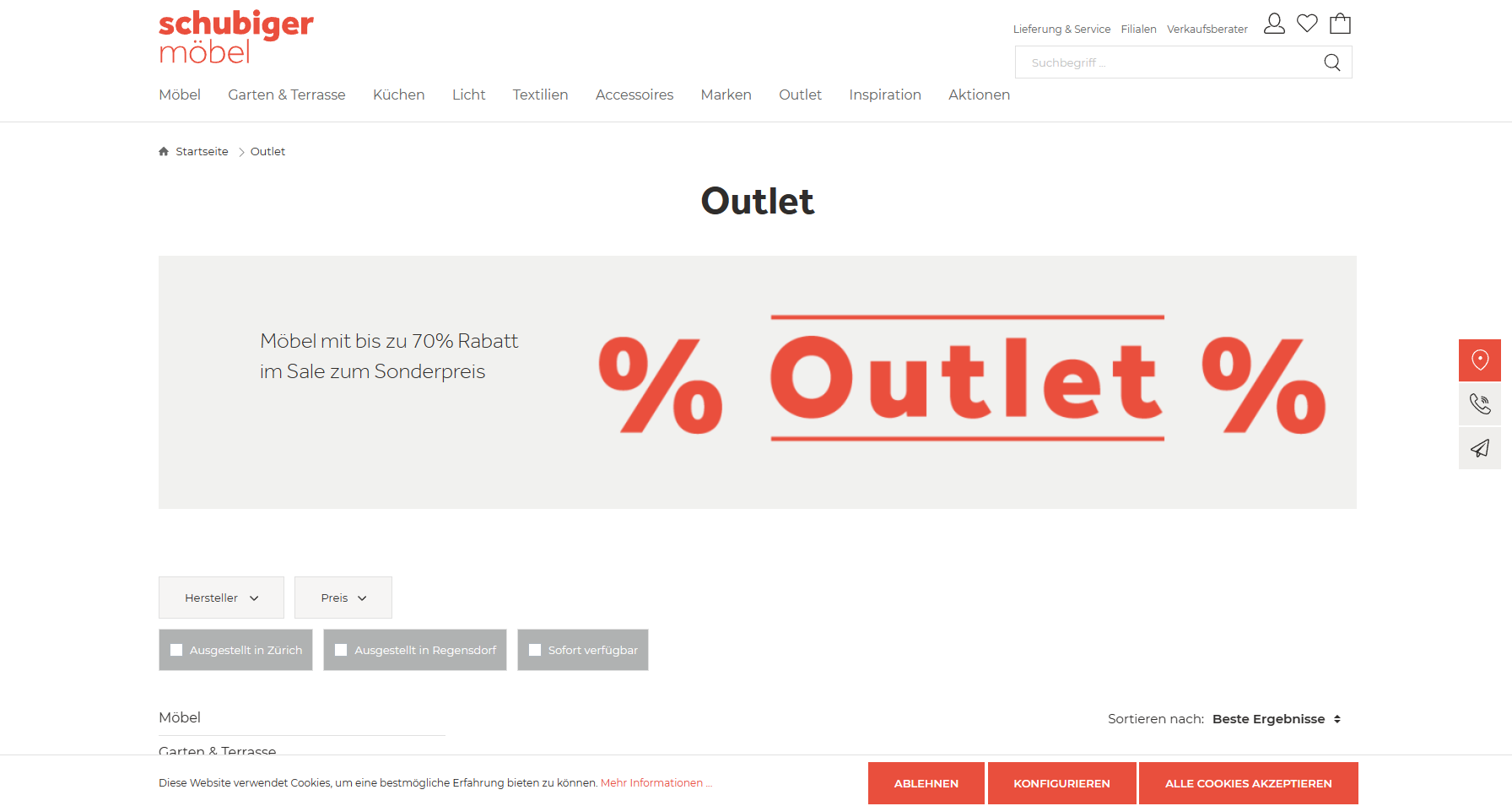 موقع شوبيجر (Schubiger) من أفضل مواقع بيع الأثاث في سويسرا، ويعتبر هذا المتجر وجهة مثالية لشراء الأثاث عالي الجودة والمصمم بأناقة للمنازل والمكاتب، ويوفر موقع شوبيجر تشكيلة واسعة من الأثاث بمختلف الأنماط والتصميمات، ويتضمن ذلك الأثاث للغرف النوم والغرف المعيشة والمطابخ والحمامات وغرف الطعام، بالإضافة إلى الأثاث الخارجي والمكاتب والإكسسوارات المنزلية.